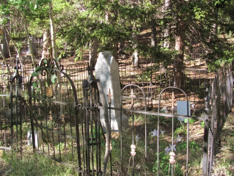 There was a dance hall girl in Buckskin Joe, called Silverheels for the silver decorations on her dancing shoes. A smallpox epidemic hit the camp in the winter of 1861, and Silverheels was the only woman who stayed to care for the sick miners and families. She contracted smallpox herself, and the town took up a collection in gratitude of her dedication, nearly $5000. The next spring, when the miners delivered the reward, her cabin was deserted. She did not leave town by horse or stagecoach, so the nearby mountains and valleys were searched. Silverheels had disappeared into the hills, her beautiful and kind face scarred by the pox. A ghostly woman dressed in black with a heavy veil is sometimes seen placing flowers on graves around the cemetery, still tending the bedsides of the people of Buckskin Joe. Mount Silverheels is named for her.